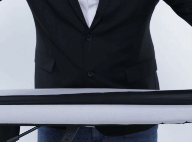 Se plie en moins de 5 secondes pour se ranger facilement. Facile à déplacer grâce à ses roulettes intégrées.